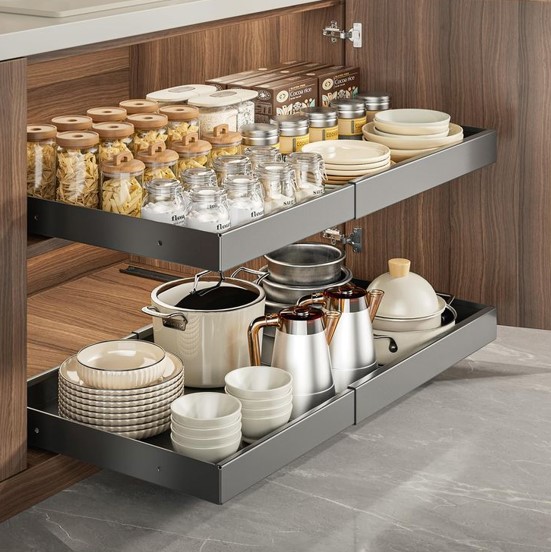 Built-in pull-out systems and drawer organizers keep everything organized and accessible. These features make it simple to reach cookware, utensils, and other essentials, turning even the busiest kitchen into an efficient, clutter-free space.
